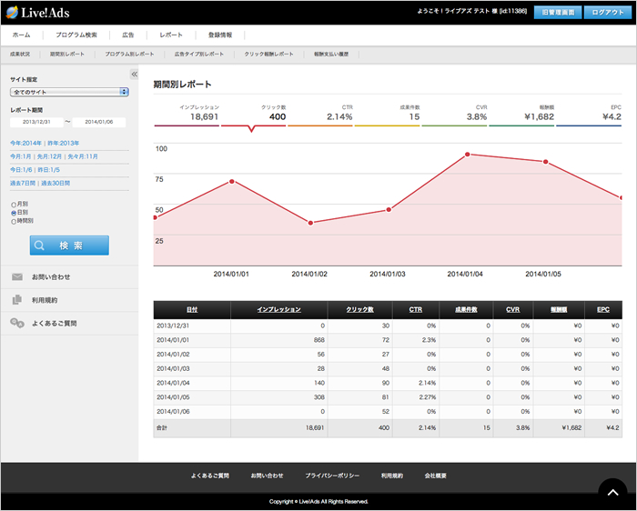 2014年1月6日、「Live!Ads」の全管理画面とウィジェット広告のクリエイティブをリニューアルしたことを発表致します。